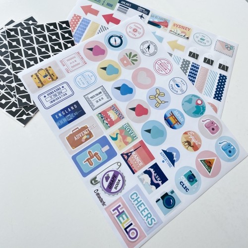 Incluye: 2 planillas de stickers para decorar (94 stickers) y 4 planillas de 60 esquineros. (para un total de 60 fotos)
