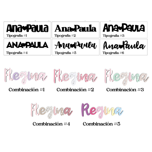 Escribe en el recuadro de texto el nombre de tu bebé, elige la paleta de colores y el tipo de letra que más te guste "Cursiva" o "de Molde"