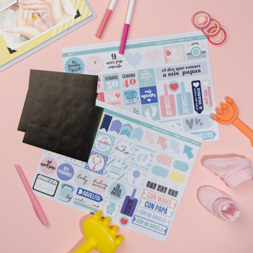 - 2 planillas de stickers y 1 planilla de esquineros para que tus invitados decoren sus mensajes llenos de buenos deseos.