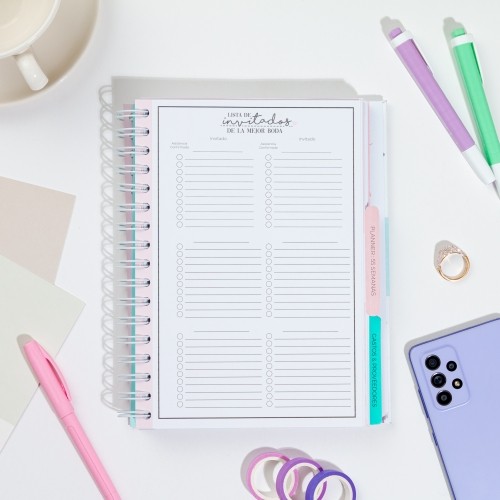 5. Planeador de un año: 55 semanas (no fechadas) para que las llenes con fecha de un año previo al día de tu boda.