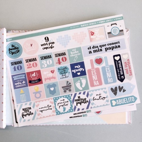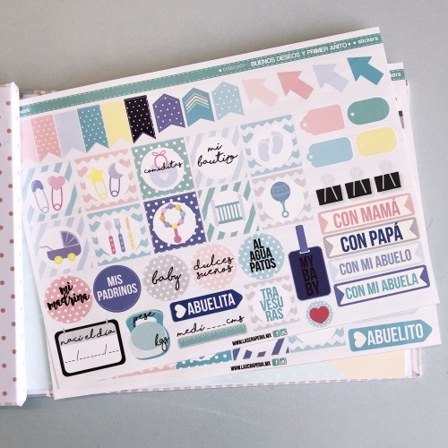 - 2 planillas de stickers y 1 planilla de esquineros para que tus invitados decoren sus mensajes llenos de buenos deseos.