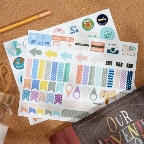 - 2 planillas con un total de 94 stickers para decorar y personalizar tu álbum. (una planilla incluye 37 stickers y la otra planilla 57 stickers)