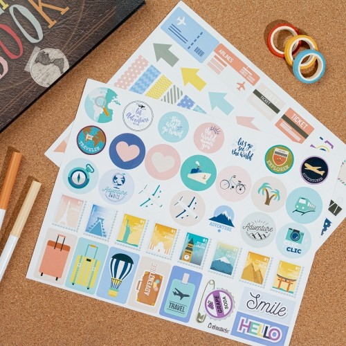 - 2 planillas con un total de 94 stickers para decorar y personalizar tu álbum. (una planilla incluye 37 stickers y la otra planilla 57 stickers)