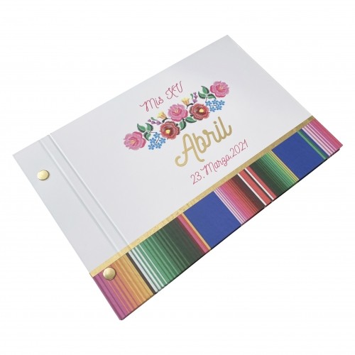 Álbum de XV personalizado con nombre en la portada y fecha del evento para que decores con fotos y tus invitados escriban sus buenos deseos el día de la boda. Con este álbum puedes guardar un recuerdo muy bonito con todos los deseos de amor y felicidad de tus invitados que te acompañaron en este día tan especial: fotos, momentos, dedicatorias y bonitos deseos... Material: impresión matte en alta resolución, material de portada resistente a salpicaduras (puedes limpiarlo con un trapo húmedo), fijado con herrajes metálicos que lo hacen super duradero y muy elegante. Medida: 33.5 cm ancho x 23 cm de alto. Que incluye la compra? Caja de cartón para que puedas guardarlo, Álbum de portadas ultrarígidas y personalización de nombres en la portada realzados, Incluye 20 hojas rígidas con diferentes diseños, 2 planillas de stickers para que tus invitados decoren sus mensajes llenos de buenos deseos, Esquineros para fotos (240 esquineros en total).