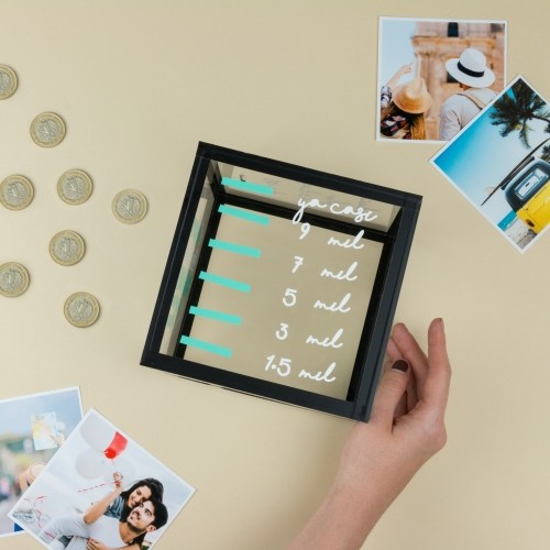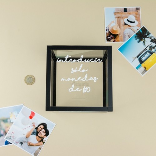 Con esta alcancía bonita no podemos romper hasta ahorrar para nuestro próximo plan!  Esta alcancía está diseñada para que ahorres con esa personita tan especial que hace tus días mejores, sus monedas de $10 pesos (mxn) y al final le cabrán alrededor de $12,500 pesos!