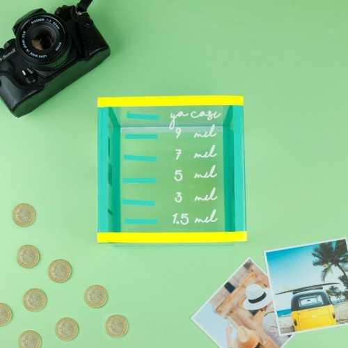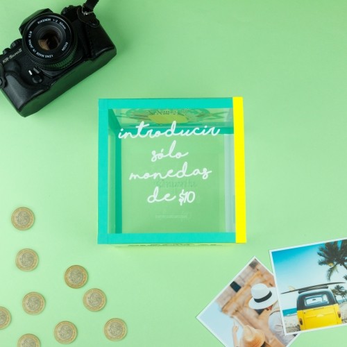 Con esta alcancía, ahorrar es bonito, para viajar es mejor! Esta alcancía está diseñada para que ahorres para viajar A DONDE TÚ QUIERAS!, sus monedas de $10 pesos (mxn) y al final le cabrán alrededor de $12,500 pesos!