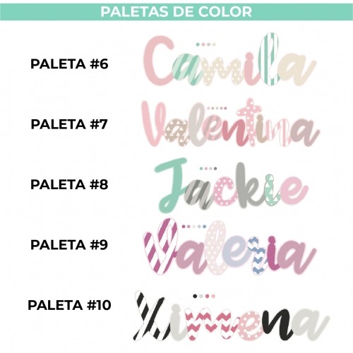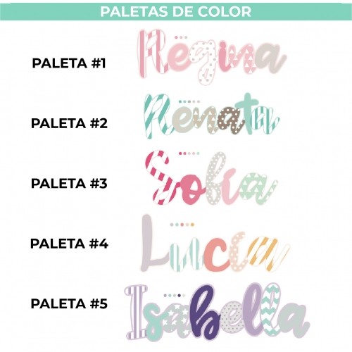 Escribe en el recuadro de texto el nombre de tu bebé, elige la paleta de colores y el tipo de letra que más te guste "Cursiva" o "de Molde"