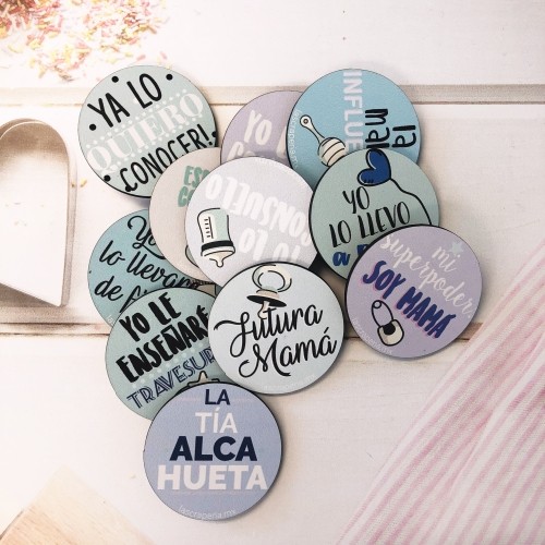 Descripción: Paquete 27 pines surtidos con 27 textos diferentes muy divertidos