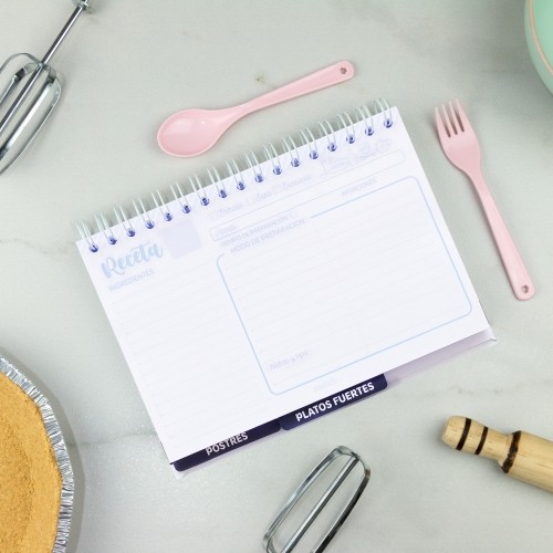 Incluye: 3 separadores; primer separador para entradas, sopas y ensaladas (20 hojas doble vista, 40 recetas), el segundo separador para platos fuertes (40 hojas doble vista, 80 recetas) y el tercer separador para postres (20 hojas doble vista, 40 recetas) y 2 planillas de stickers para personalizar cada receta!