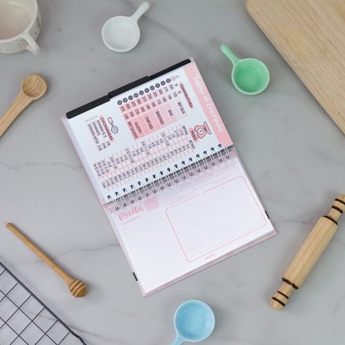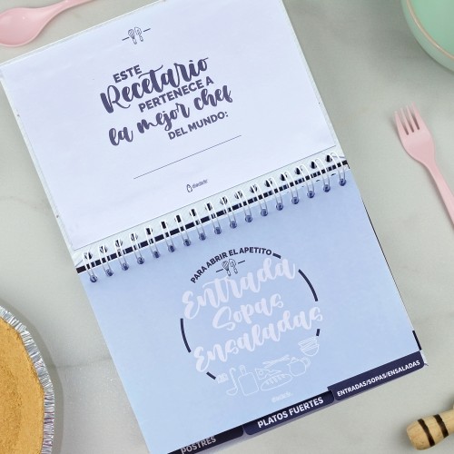 Incluye: 3 separadores; primer separador para entradas, sopas y ensaladas (40 hojas doble vista, 80 recetas), el segundo separador para platos fuertes (40 hojas doble vista, 80 recetas) y el tercer separador para postres (20 hojas doble vista, 40 recetas) y 2 planillas de stickers para personalizar cada receta!