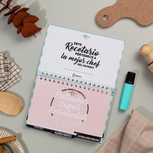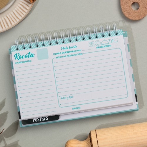 Incluye: 3 separadores; primer separador para entradas, sopas y ensaladas (40 hojas doble vista, 80 recetas), el segundo separador para platos fuertes (40 hojas doble vista, 80 recetas) y el tercer separador para postres (20 hojas doble vista, 40 recetas) y 2 planillas de stickers para personalizar cada receta!