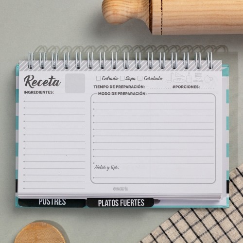 Para aquellos que tienen secretos culinarios únicos y exclusivos que dan sazón, tenemos este recetario, anota tus mejores recetas con todos los secretos de un buen chef! Este recetario está especialmente diseñado para anotar todas las recetas secretas de familia, o las que ves en la TV o que te pasen el gran secreto para ese delicioso platillo!