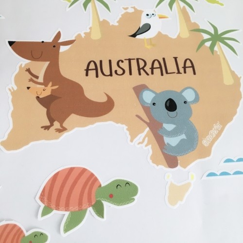 Incluye: pliegos recortados por continentes para una instalación más sencilla. Puede ir sobre cualquier color de muro, en las imágenes puedes ver ejemplos de cómo quedarían.