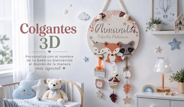 COLGANTE 3D NIÑO ANIMALITOS BOSQUE 3